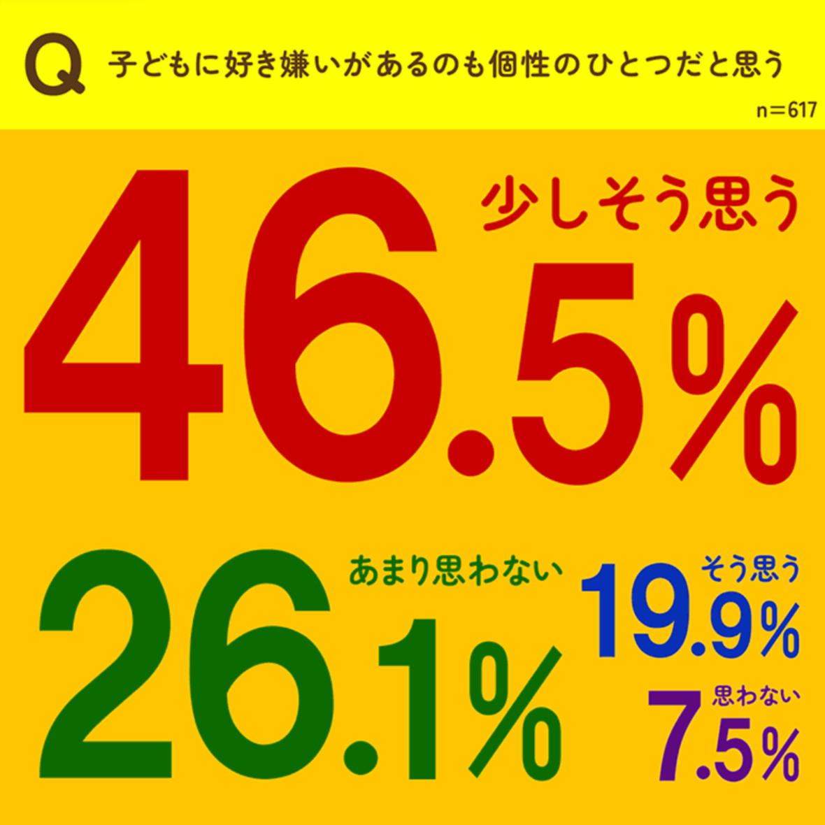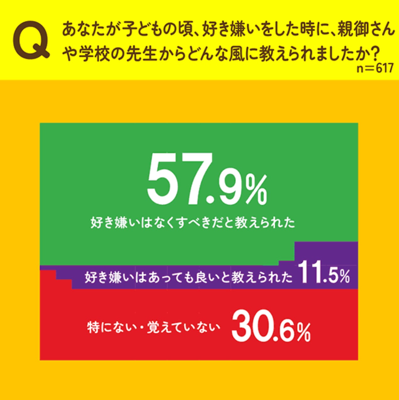 617名の親に聞いた『#子どもの好き嫌いを克服するべきか問題 大調査』を公開7割以上が「子どもの好き嫌いは克服すべき派」という結果に