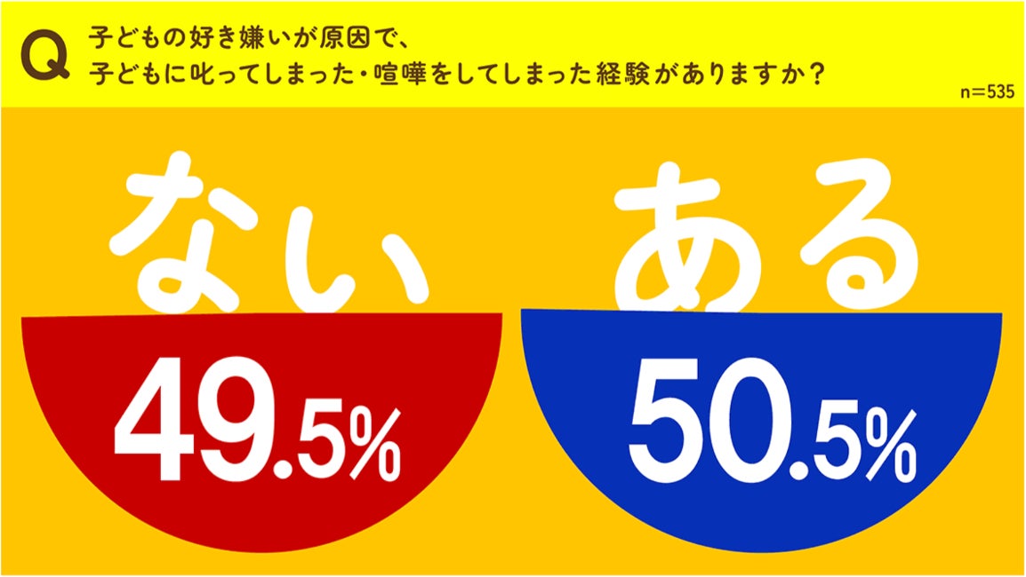 TOPIC②:好き嫌いがある子どもと親の経験や抱える悩みを調査 子どもの好き嫌いで・・・半数の親が「叱った・喧嘩をした」、しかし「改善しなかった」が6割以上