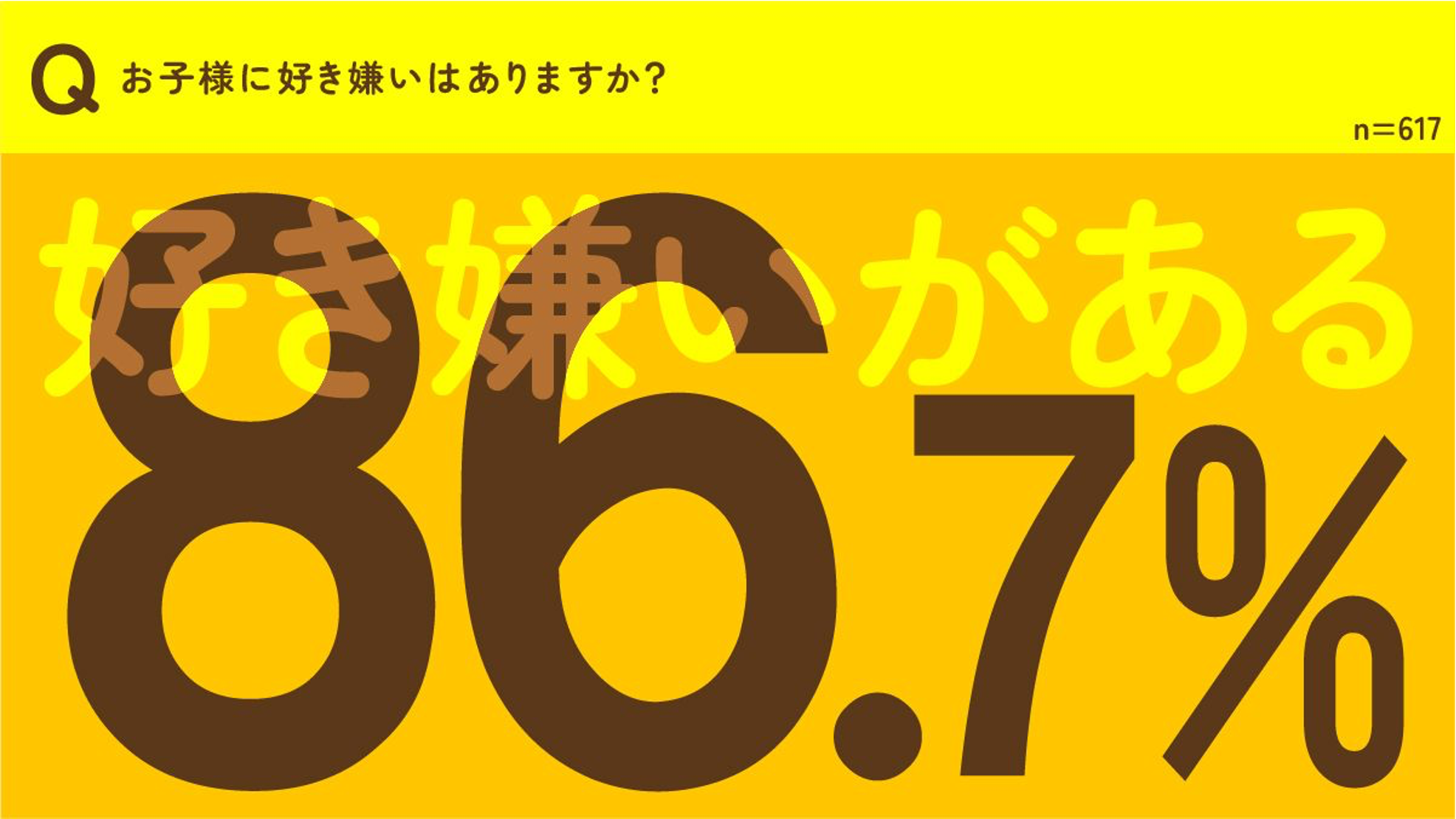 さらに、子どもに対する「好き嫌いエピソード」を調査でヒアリング。「給食のメニューがどうしても食べられないのでその日は休んだ」「子ども3人嫌いなものがそれぞれ違うので献立作りにいつも悩む!」など様々な親の家庭の実体験に基づいたエピソードがありました。