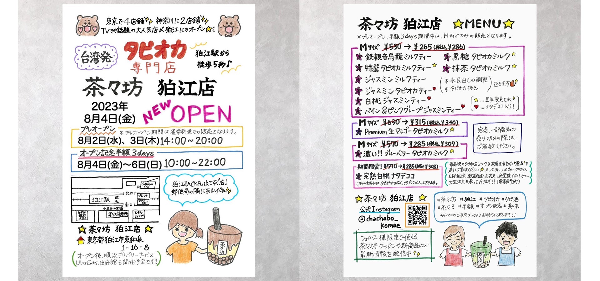 テレビでも話題の大人気店、台湾発タピオカ専門店『茶々坊』狛江市に7店舗目をオープン決定!!8月4日(金)〜8月6日(日)はオープン記念全品半額イベントを開催!!