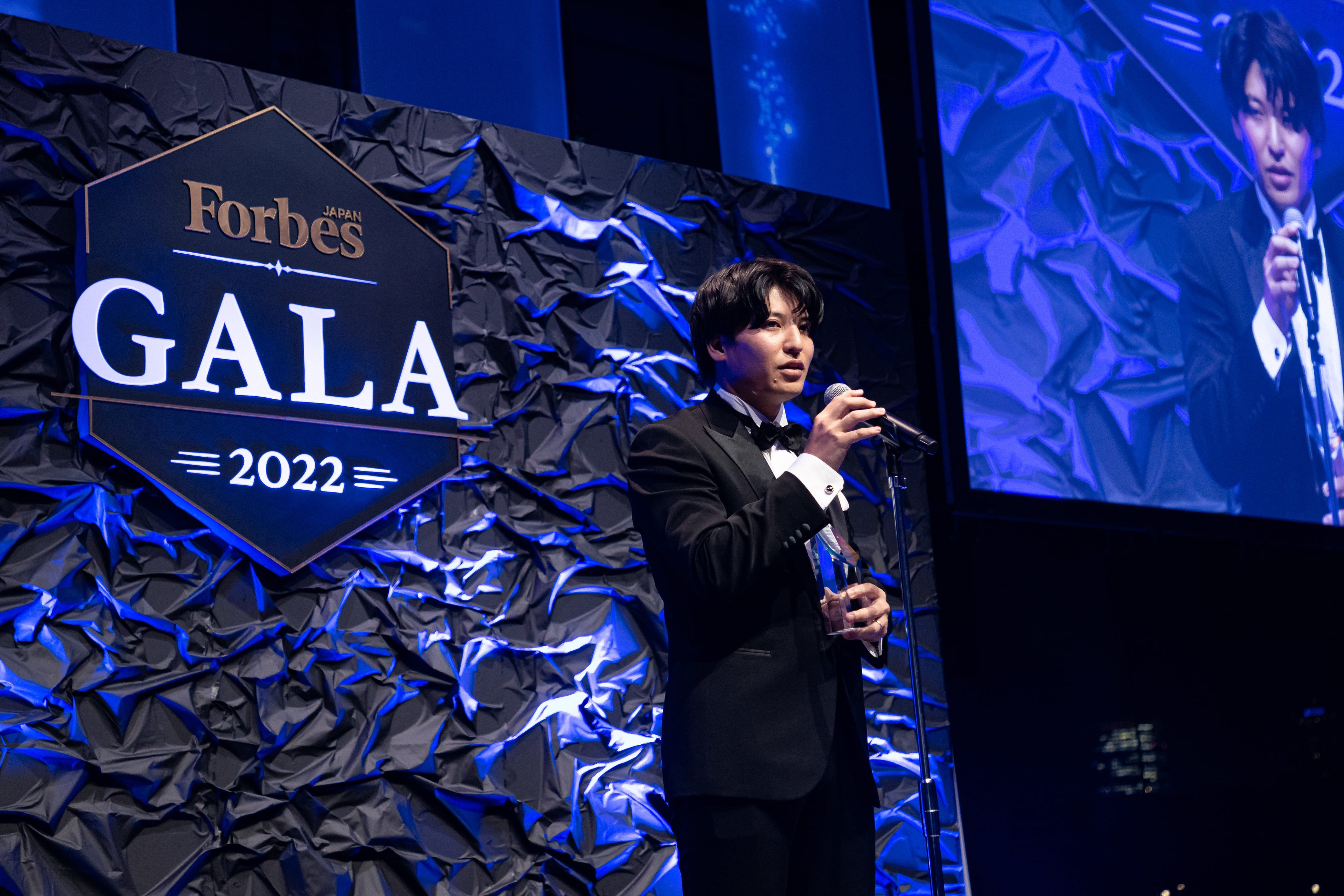 本アワードの授賞式は、『Forbes JAPAN』が主催する「Forbes JAPAN Special Gala Dinner」(12/13(火)開催 / クローズドイベント)内で行われ、Gainsight株式会社 代表取締役社長 絹村 悠氏から、株式会社ユーザベース SPEEDA事業 執行役員CCO 西川 翔陽氏へ記念のトロフィーが贈られました。