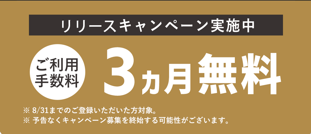 【企業様】2023年9月30日までのご登録に限り、3ヶ月間のご利用手数料が全額無料!