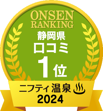 静岡県総合第1位は2022年~2024年で3連覇。今回は東海エリアでも初の総合1位を獲得できました。全国総合 第29位・静岡県口コミ部門 第1位・全国コスパがいい部門 第26位・全国お湯がいい部門 第28位・全国絶景部門 第6位と、合計7部門を受賞することができました。