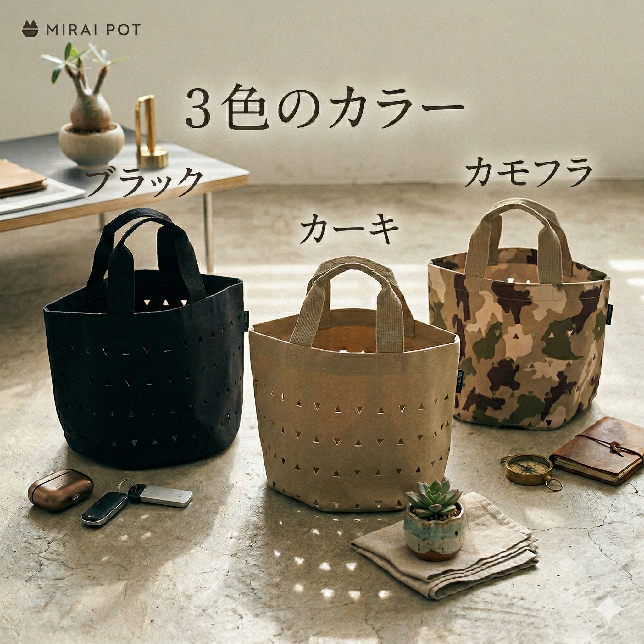 素材にはUV加工と撥水加工を施した特殊オックスフォード生地を使用。屋外の過酷な環境下でも劣化しにくく、数年単位での長期使用が可能です。プラスチック鉢に代わるサステナブルな選択肢として、環境意識の高いユーザーからも支持されています。