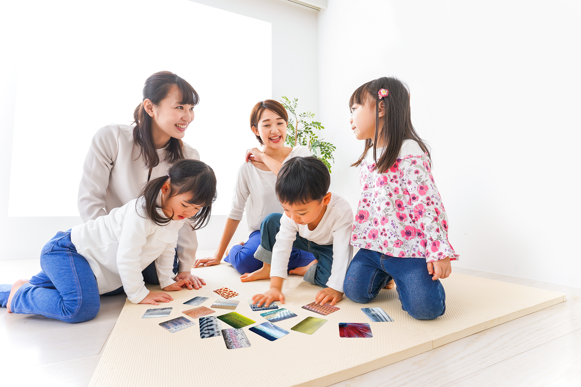 さかなかるたは、「見て」「触って」遊びながら魚について学ぶ事ができるため、視覚や触覚を刺激する知育玩具としても使用可能です。