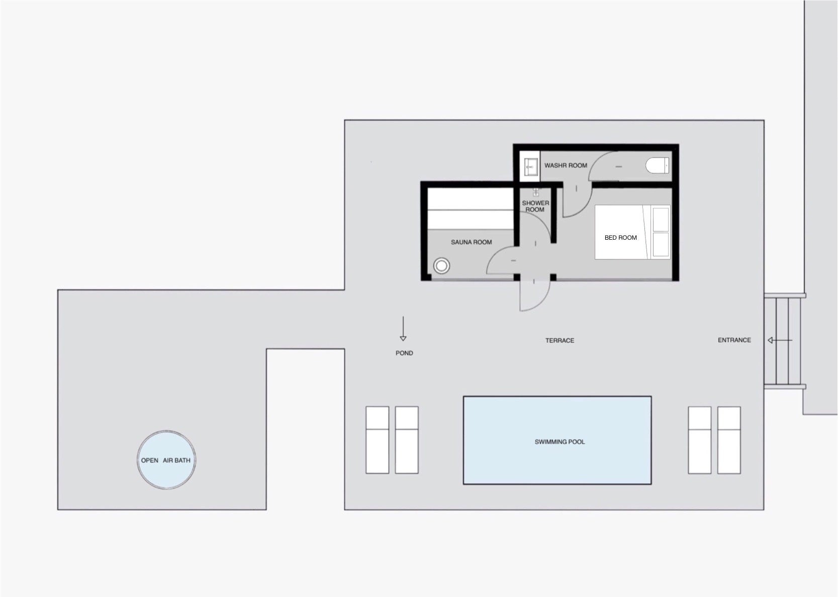 サウナ室・休憩室・シャワー・洗面 / 屋内空間+テラス 14.07㎡+103.01㎡ 露天風呂・アウトドアダイニング(BBQ)・駐車場2台