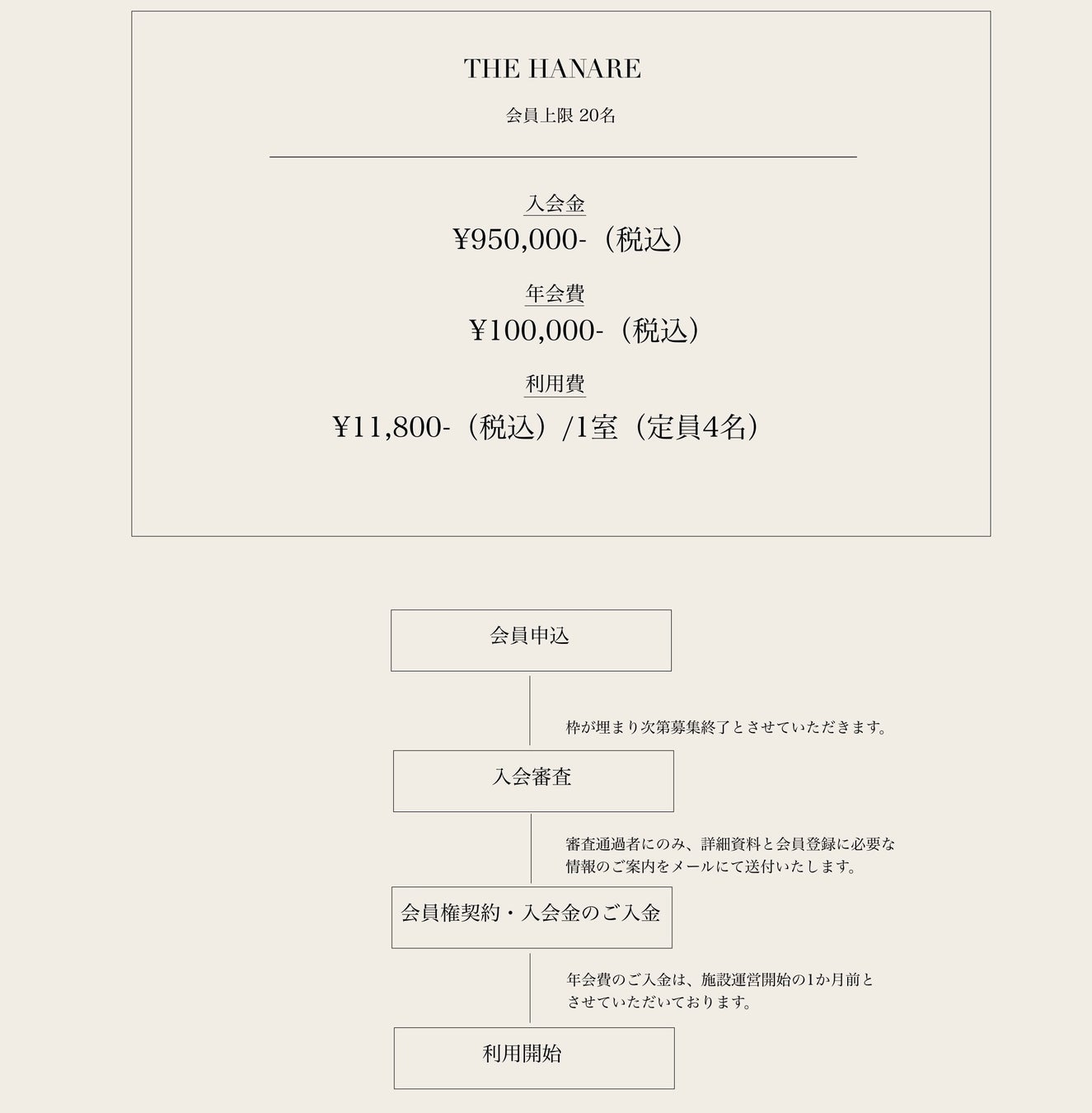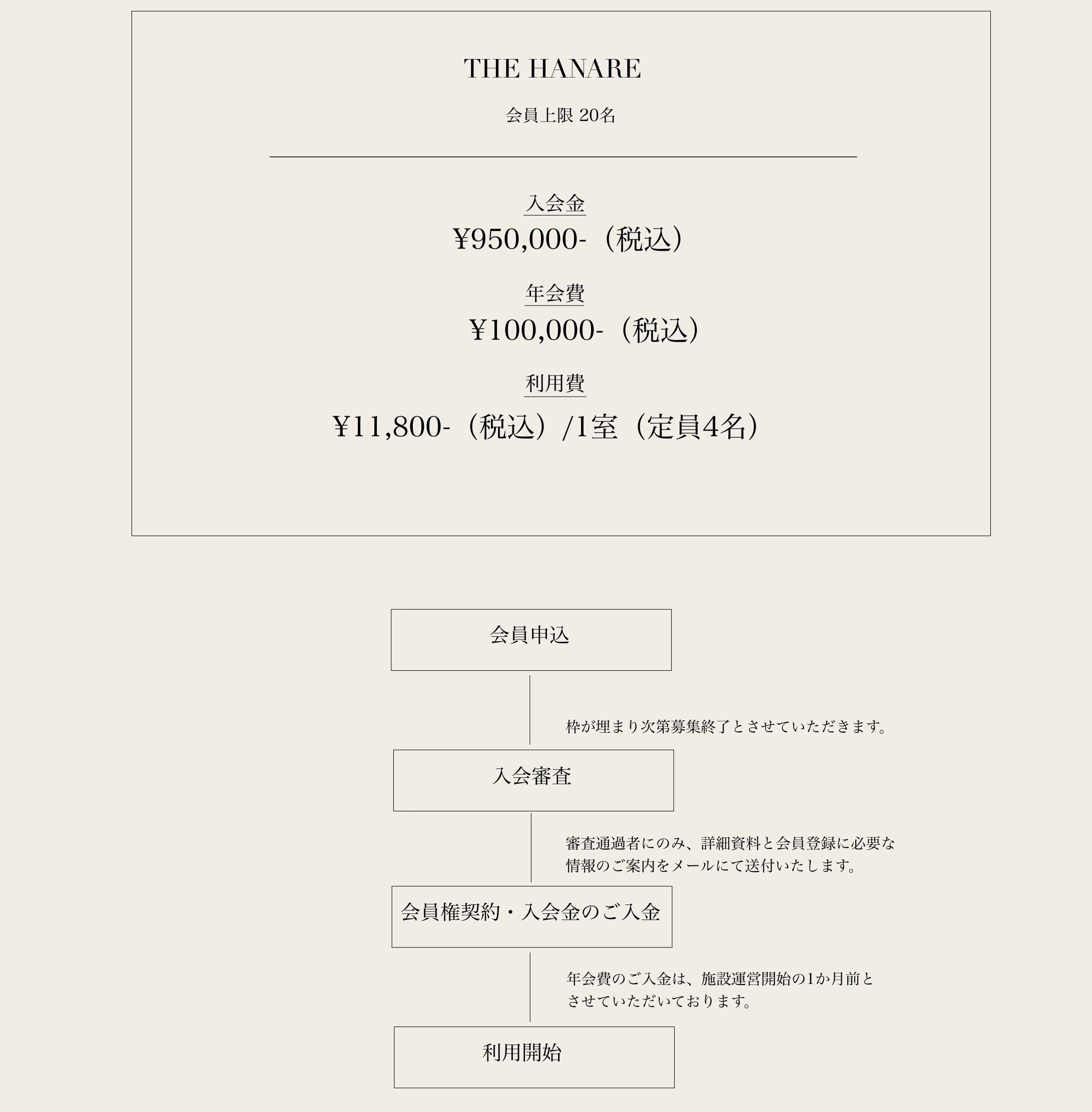 THE HANAREは審査を通過された20名の会員様及びゲスト様がご利用頂けます。