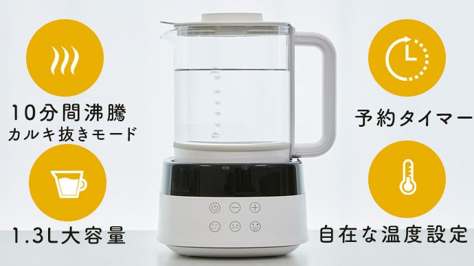 - カルキ抜きモード搭載: 10分間の連続沸騰でカルキを取り除き、不純物のない純粋な白湯を作ることができます。
