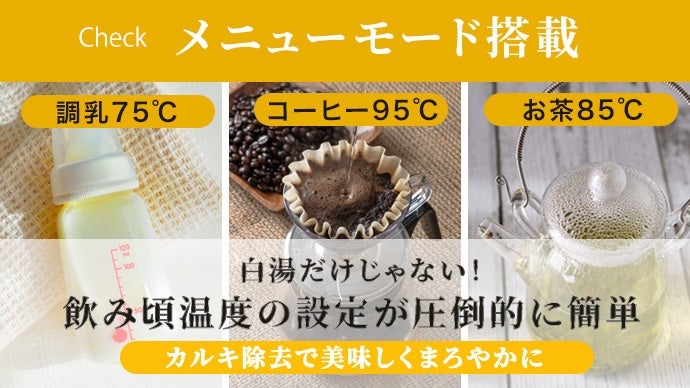 ・【カルキ抜きモード搭載】ご自宅で完璧な白湯を。