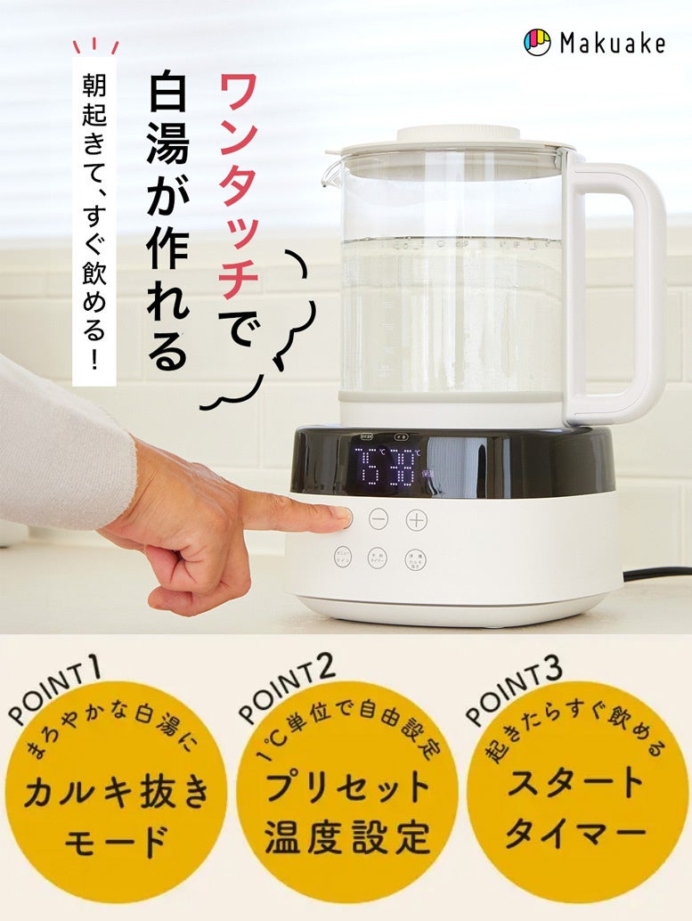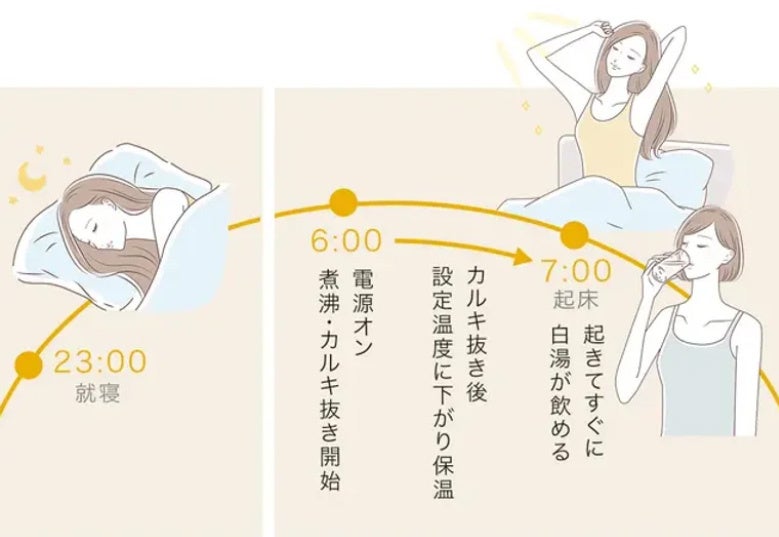 - タイマー機能: 就寝前にセットしておけば、朝起きたときにすぐに飲める白湯が用意されています。