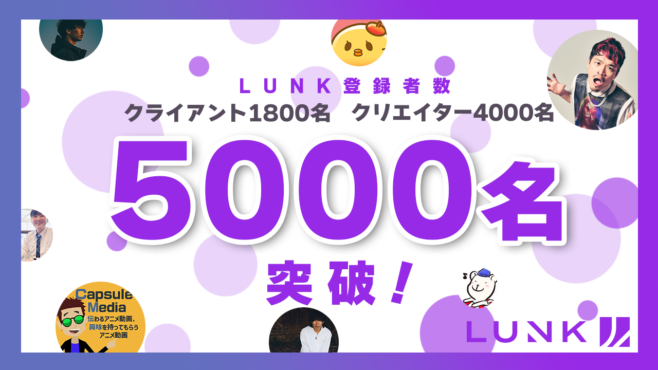 株式会社LUNK(所在地:東京都渋谷区、代表取締役:高田樹)は、動画編集のマッチングサービス「LUNK(ランク)」がリリースから半年で登録者数5000名を突破しました。