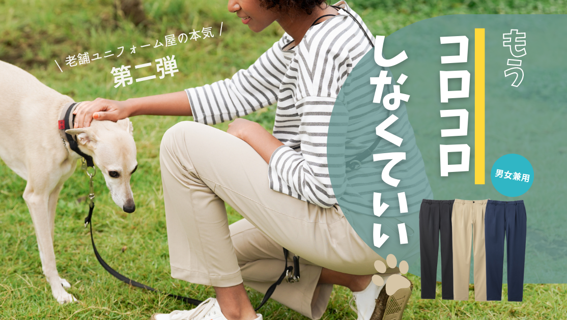 創業70年のユニフォームの老舗ダイイチが挑戦するクラウドファンディング第二弾「動物の毛が付きにくいパンツ」が応援購入サイトMakuakeにて11/17(木)より販売スタート!