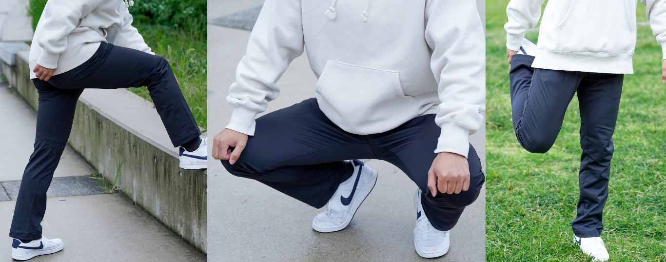 おなか周りにある程度ゆとりを持たせたり、膝のつっぱりも軽減されるよう細かい工夫を施しています。