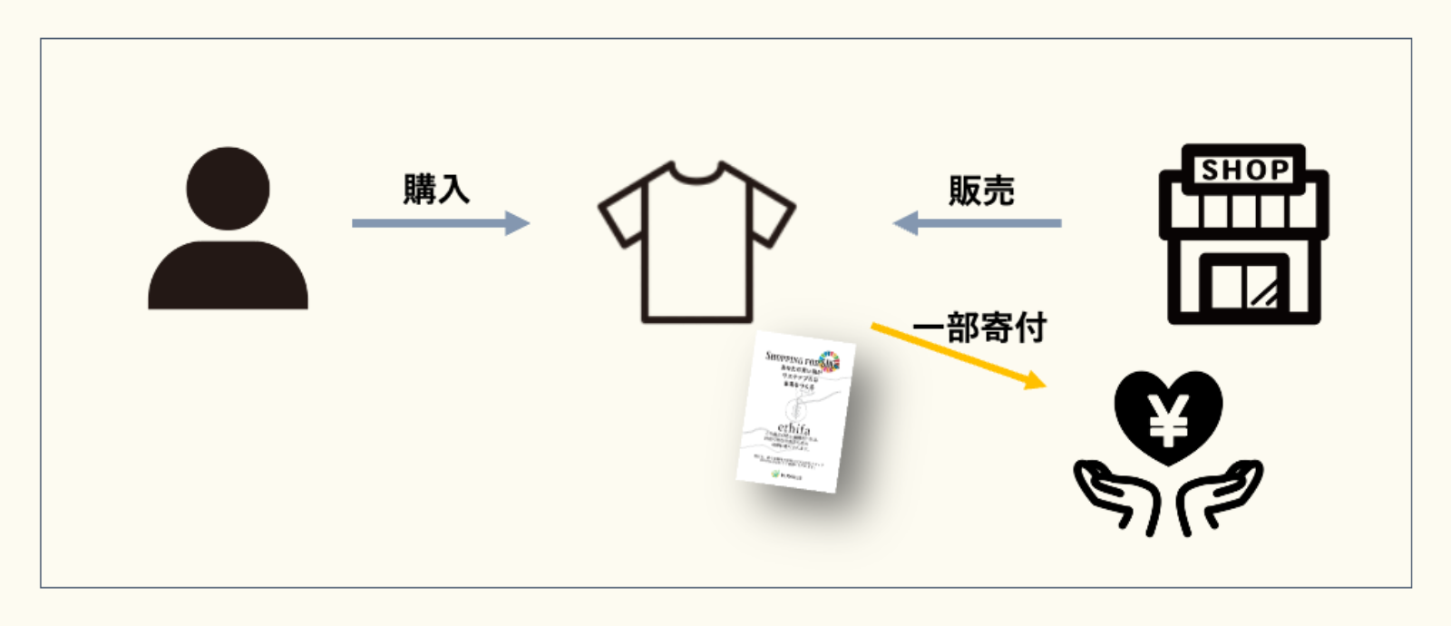 企業は、MIRASUSと提携し、MIRASUS指定のタグを商品につけることができます。そして、消費者は指定タグのついた商品を購入するだけで売上の一部から寄付が行われ、誰でも手軽に途上国への寄付に参加できる仕組みとなっています。
