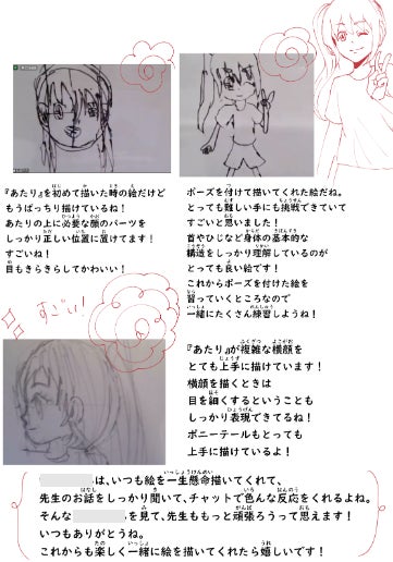 「棒人間ばかりだったのに・・・1ヶ月で確実に上達していて、本人も自信がついているのが分かります」