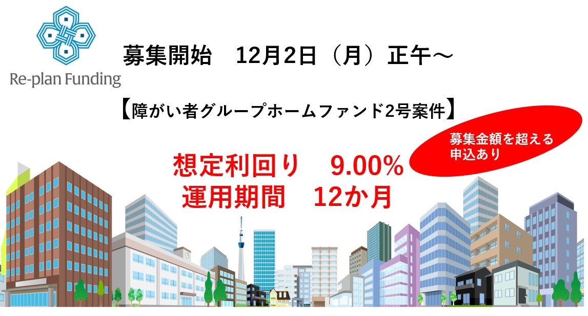 不動産投資型クラウドファンディング「Re-plan Funding」インカム型 第2号ファンド募集開始から早々に募集を超える申し込み