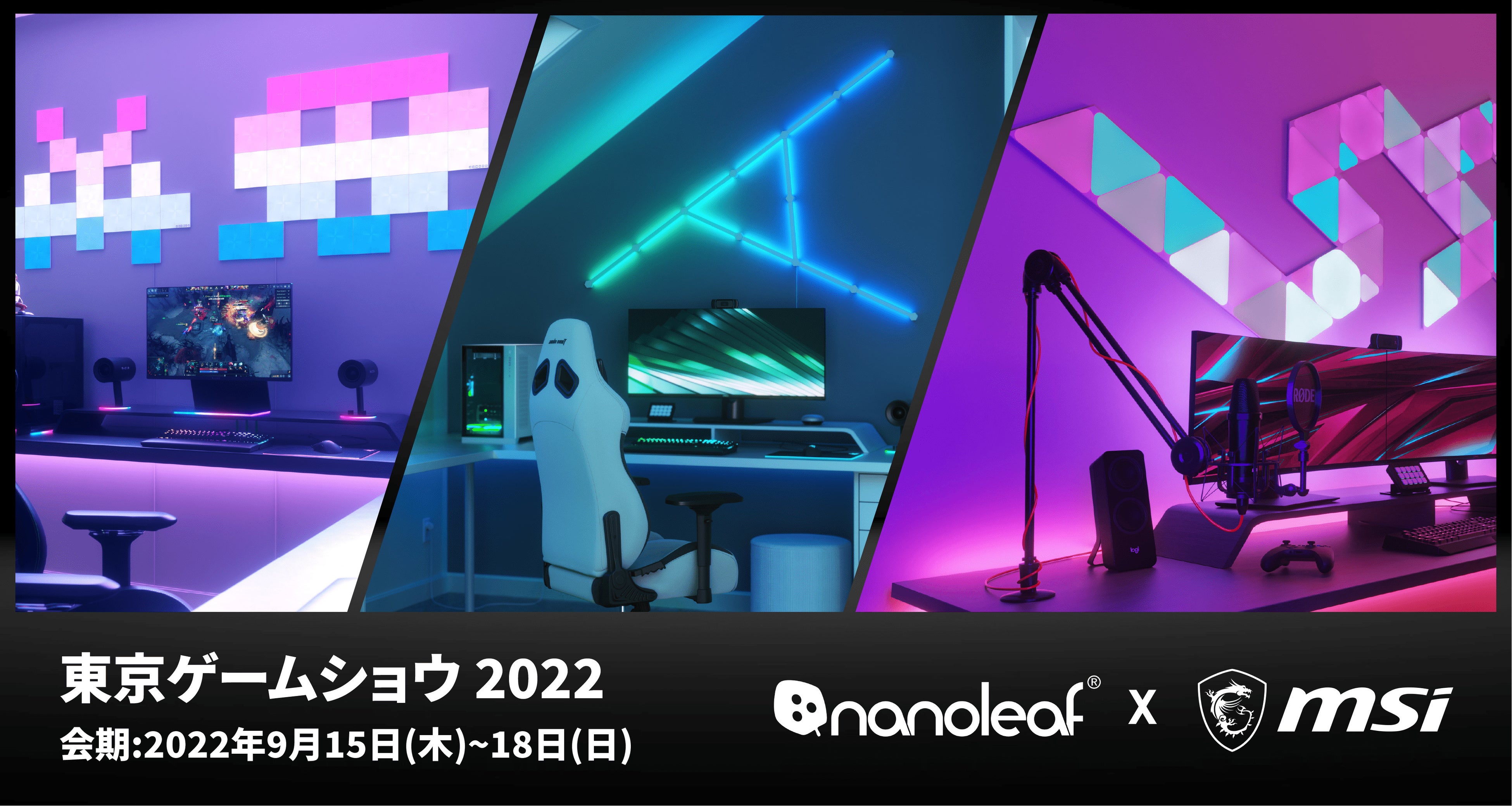 カナダ発のスマートライトメーカー「Nanoleaf(ナノリーフ)」は、2022年8月23日〜31日にMSIと共同でTwitterプレゼントキャンペーンを実施、2022年9月15日〜18日に行われる東京ゲームショウ2022にも共同出展いたします。