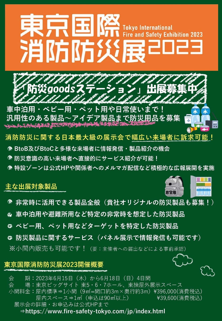 2023 年 6 月15日(木)~18日(日)に東京ビッグサイトで開催予定の「東京国際消防防災展2023(FIRE-SAFETY TOKYO)」は現在出展者を募集しております。