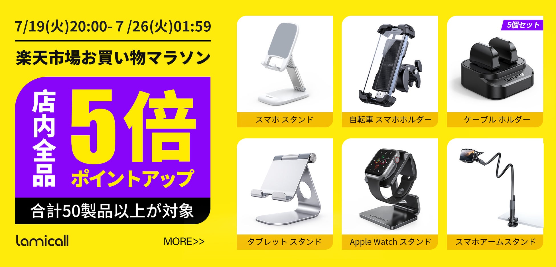 スマートフォン用ホルダー、スタンドなどのスマートフォンアクセサリを製造、販売するLamicall(ロミコール・ダイレクト楽天市場店)は、2022年7月19日(火)20:00から7月26日(火)01:59に開催されるお買い物マラソンにおいて店内全品をポイント5倍アップし販売いたします。