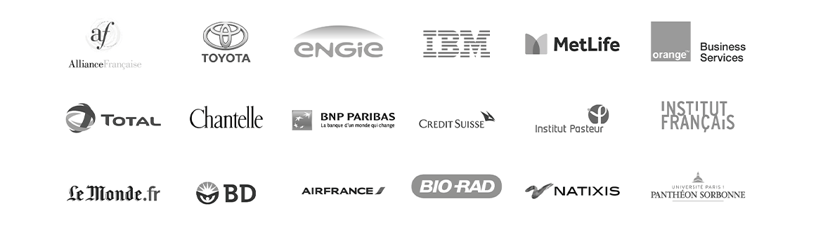 語学学習プログラム「Gymglish」シリーズはフランスのA9社の人工知能研究者を中心とするチームにより開発され、2004年以来、英語、フランス語、ドイツ語、スペイン語、イタリア語の学習プログラムをリリースし、欧米を中心に600万人以上の受講実績、6000社以上の企業採用実績があります。