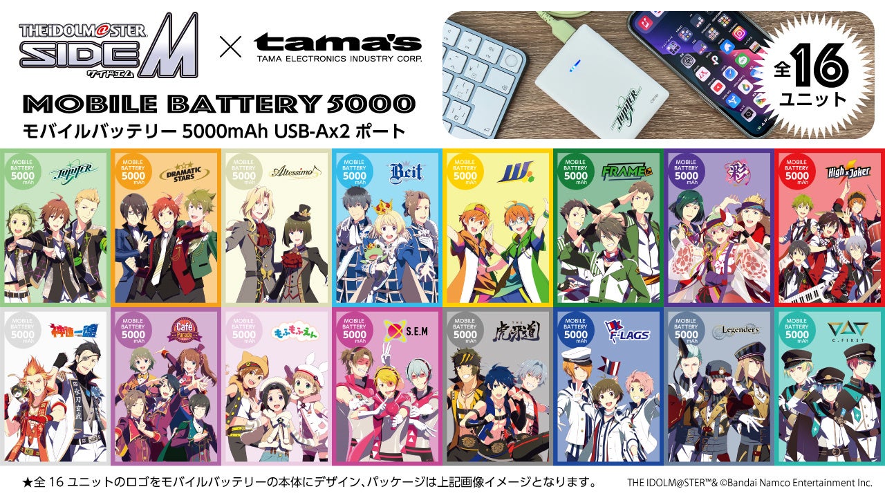 「アイドルマスター SideM」モバイルバッテリー 全16ユニット 9月23日発売開始!