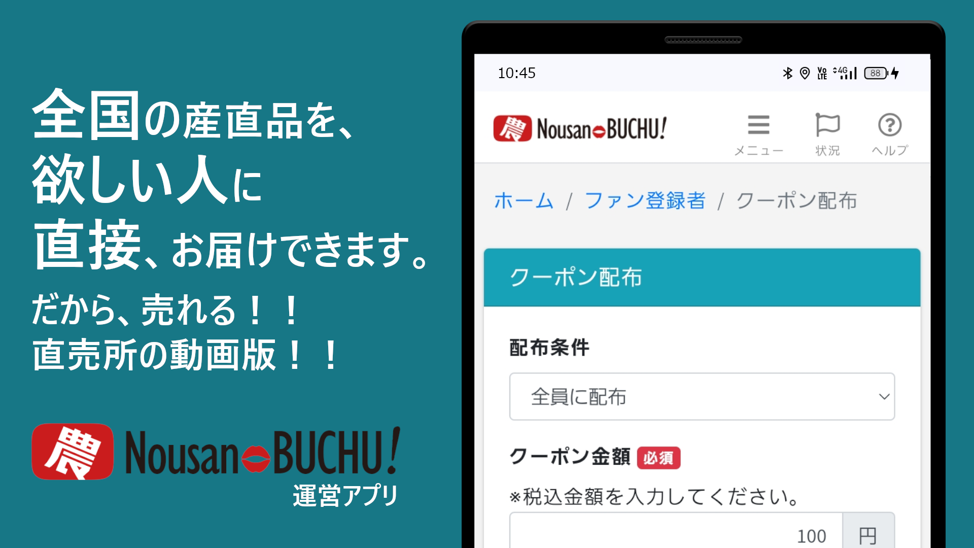 株式会社エモテント(本社所在地:福岡県福岡市、代表取締役社⻑:小林稔)は、5月18日から、生産者の販路拡大の一助となる、産地直送型通販サイトの国内需要の高まりを背景に、動画配信に特化した産直通販アプリ『Nousan-BUCHU!』をリリースしました。