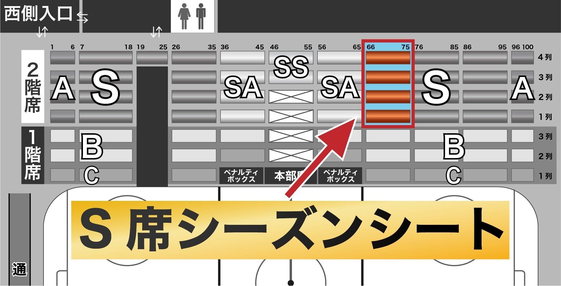 ■カテゴリー :S指定席(西側 2階4列・席番号66-75 区画)