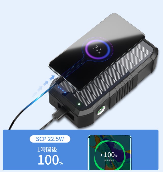 Huawei Super Charge SCP22.5Wをサポートして、自社従来品の5V/2Aモバイルバッテリーより、充電効率が3倍アップし、超急速充電を実現します。最先端のPD 18W技術が搭載され、アイフォンスマホに充電する場合、1時間でフル充電になります。