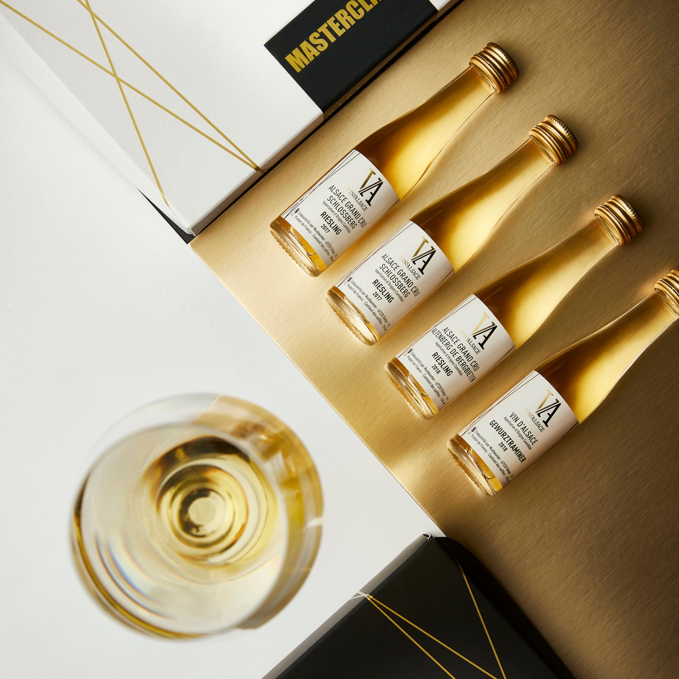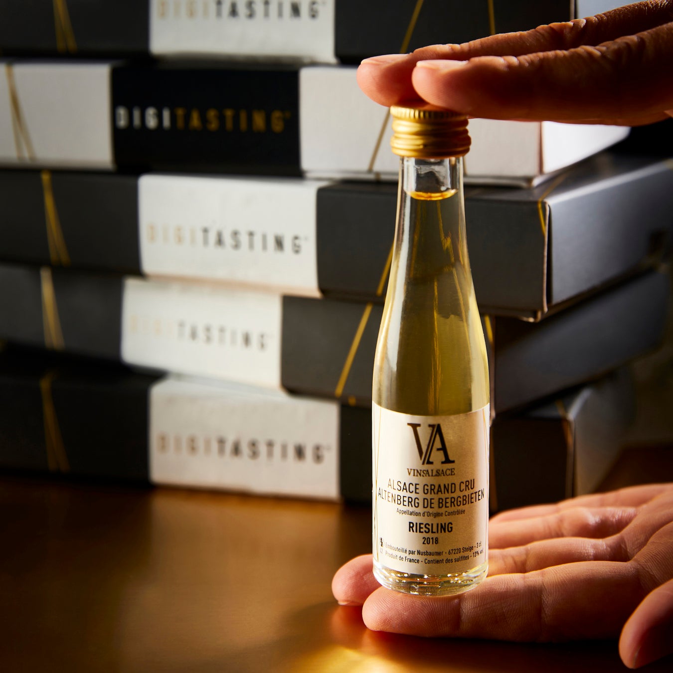 ワインはアルザスで瓶詰めされ、ライン川の伝統的なフルート型のミニサイズのガラス瓶に入れられ、気密性の高いカプセル内に密閉されます。それぞれの「ミニフルート」には3clのワインが入っており、ワインの専門家にとって理想的なテイスティングサンプルサイズになっています。
