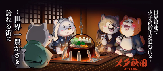 約100年の歴史がある「秋田犬保存会」のスピンオフ企業として、秋田犬×Web3をテーマに地方創生に取り組んでおります。現在、秋田犬と地方の文化を掛け合わせたNFTの企画販売や世界中の秋田犬ファンが集うメタバースを開発中です。今後は老犬ホームの設立や秋田犬酒Bar、本当に犬にやさしいドッグフードのプロデュース等、犬と人が安心して生活できる世界の実現に向けて事業の多角化に注力してまいります。