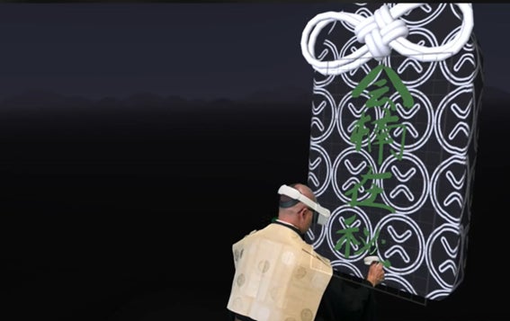 「NFT OMAMORI」は本来の御守りと同様、お坊さんにご祈祷いただいた上で作成しています。VRヘッドセットをつけたお坊さんがVR上で祈りを込めた3DCGの御守りをNFTとして提供いたします。