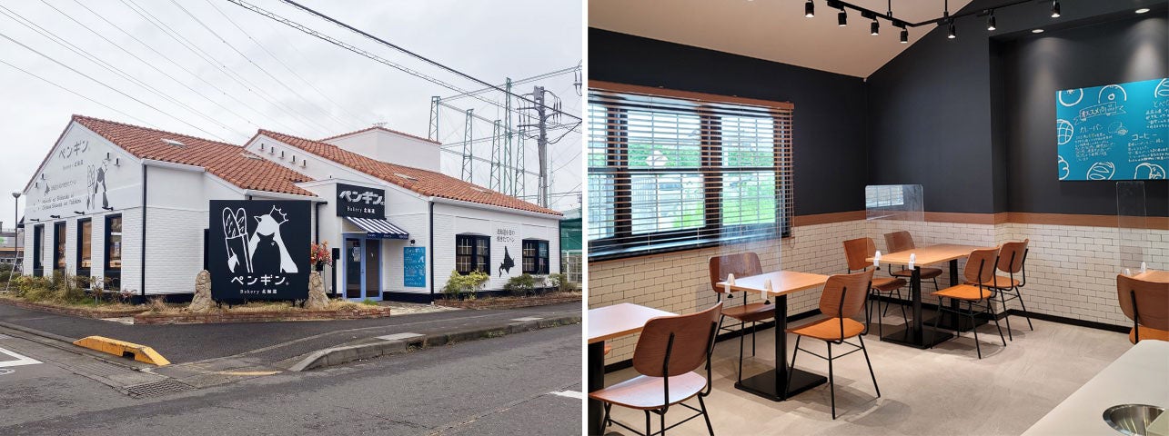 「ペンギンベーカリー平塚河内店」は、2022年3月にオープンした神奈川県・第1号店。マックスバリュ平塚河内店に隣接し、住宅街の中にある地元のお客様の生活に密着した店舗です。店内にはイートインスペースもあり、購入したパンを店内でゆっくりと召し上がっていただくこともできます。
