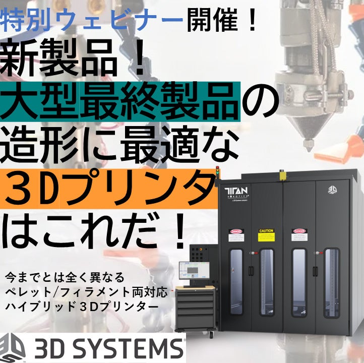 3D Systems の社長兼 CEO である Jeffrey Graves 博士は次のように述べています。「工業とヘルスケアの市場をリードする積層造形ソリューションのパートナーとして、3D Systems はお客様の AM 生産ニーズに可能な限り幅広く対応することをお約束しています。Titan Robotics 独自の押成形技術が加わることで、大型造形容積、優れた性能、そして生産性の向上を求めるお客様のニーズに、極めて低コストで対応できるようになります。同社製プリンタが採用している革新的なモジュラー型アプローチと、広く利用されている生産用ポリマーシステムのオープンアーキテクチャでペレットとフィラメントの両方の製品形態が使用できるようになることで、産業用 3D プリントの普及率が今後も加速していくことを確信しています。Titan Robotics が持つエンジニアリングとアプリケーションの専門知識と、3D Systems の販売、サービス、アプリケーションチームによるグローバルな対応力を組み合わせることで、あらゆる市場でお客様をサポートできる体制を整えていきます」