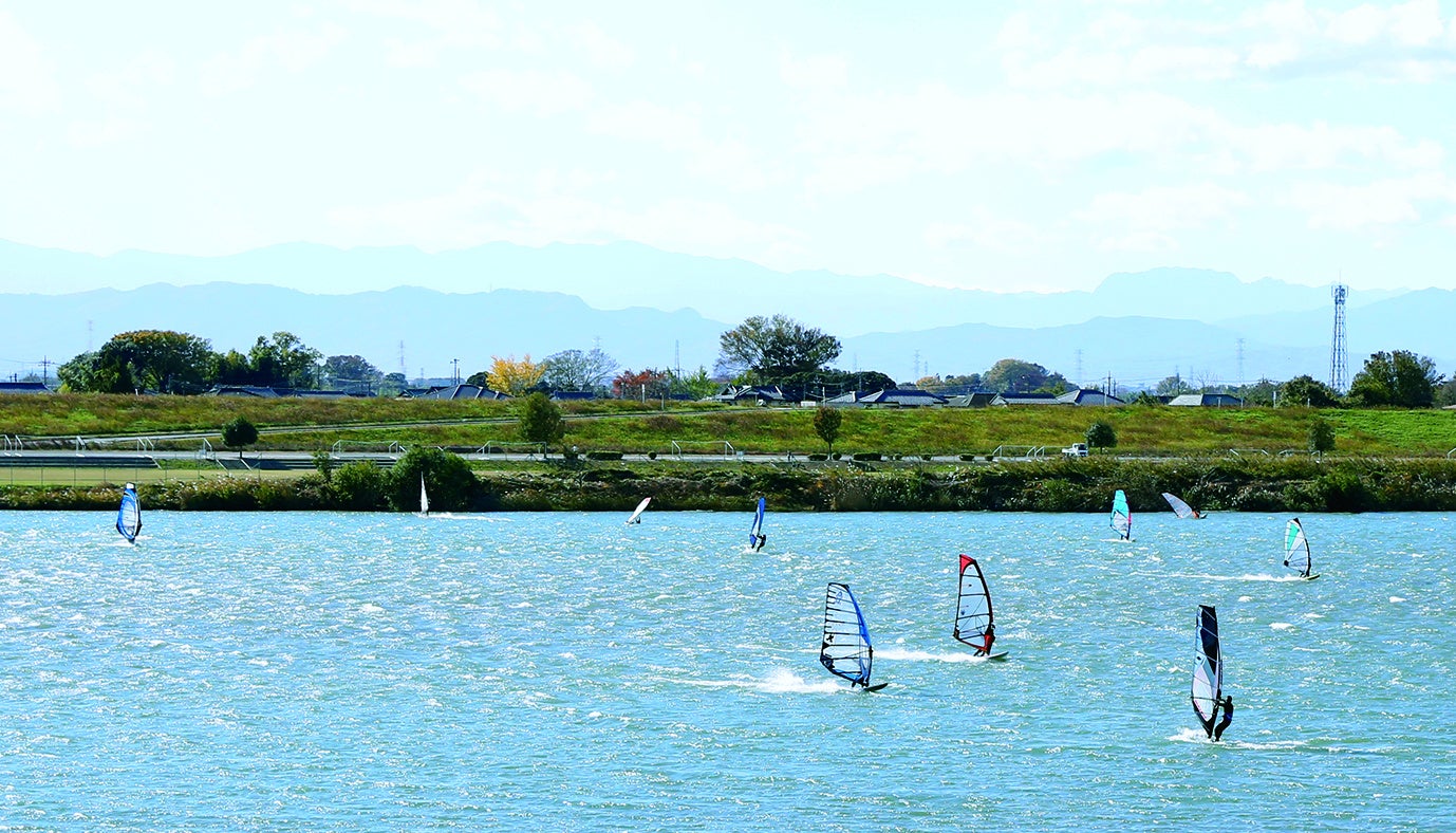 また、全長700mの利根大堰(千代田町)に堰き止められた上下流域は多くのフィッシングポイントがあることから、たくさんの釣り人で賑うとともに、上流部の水面はウインドサーフィンやジェットスキー等の利用者が多く、水上スポーツのメッカとしても知られています。