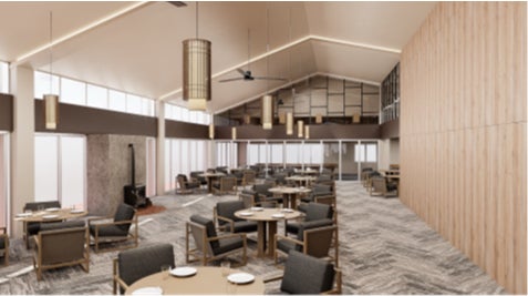 レストランでは高い天井と大きな窓から自然光がやさしく降り注ぎ開放感あふれる設計で、内装は木目を活かしたデザインで温かみのある落ち着いた雰囲気を演出。ゴルフのプレー前後のお食事や歓談の場として会話やひとときを楽しむことができる空間を目指して運営を行ってまいります。お食事はホテルシェフ監修のもと、季節の食材を活かした彩り豊かなビュッフェ料理をご用意しております。また、ビュッフェ料理に加え、お客様の多様なニーズにお応えできるようお好みに合わせてお選びいただけるメインディッシュもご用意。幅広い世代のお客様にご満足いただける内容となっております。