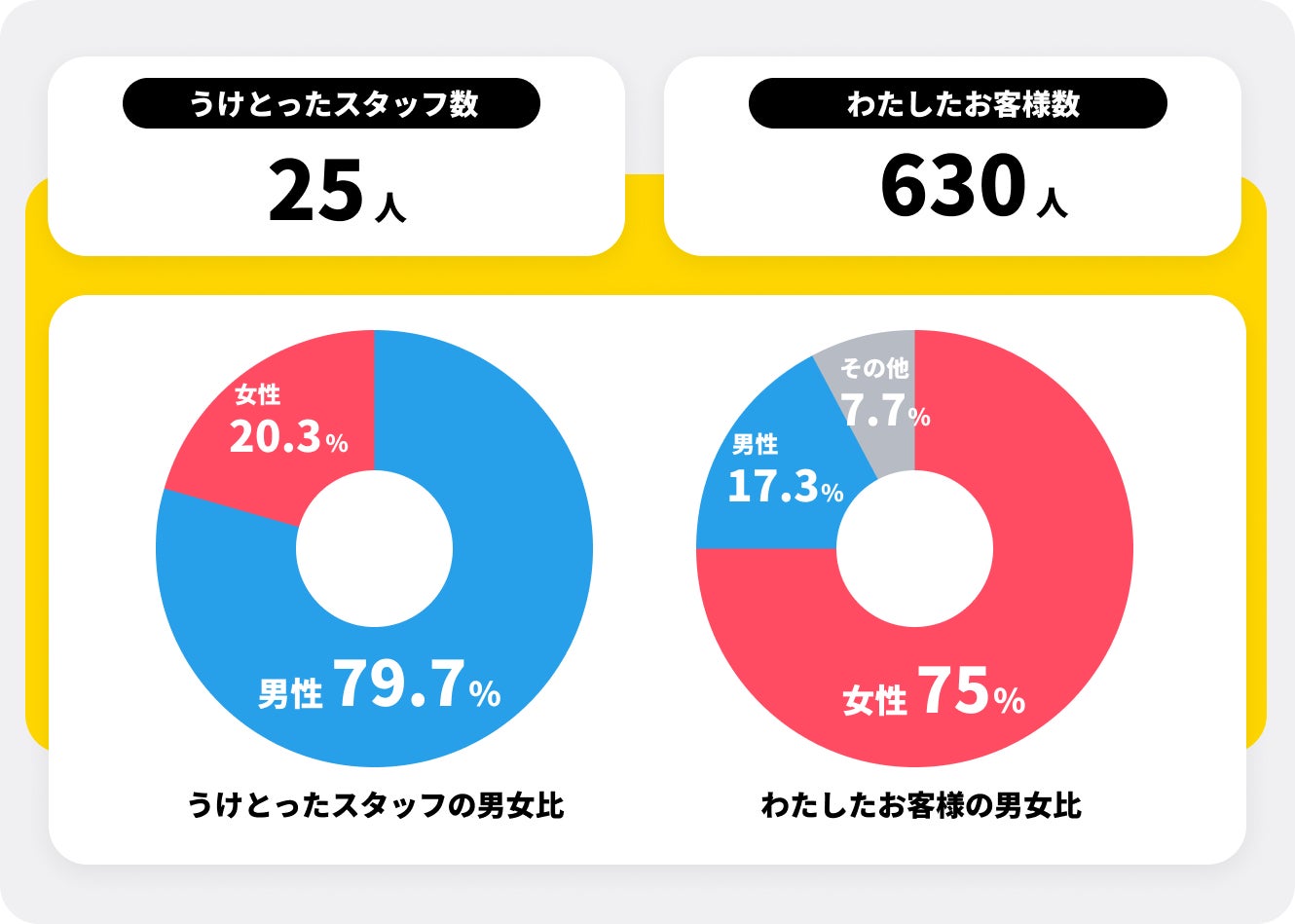 ・チップを受け取ったスタッフの男女比: 男性79.7%・女性20.3%