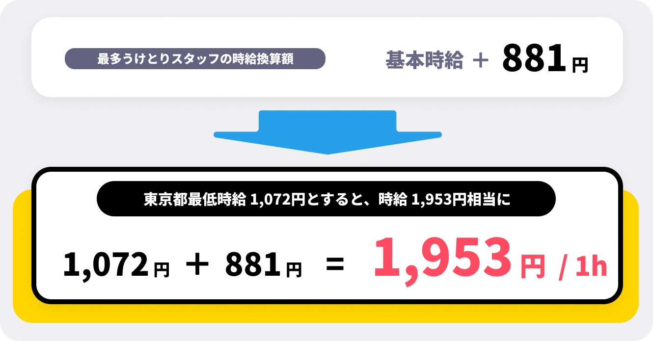 東京都の最低賃金1,072円(※2)とすると、時給換算値として1,953円相当の時給という計算となりました。