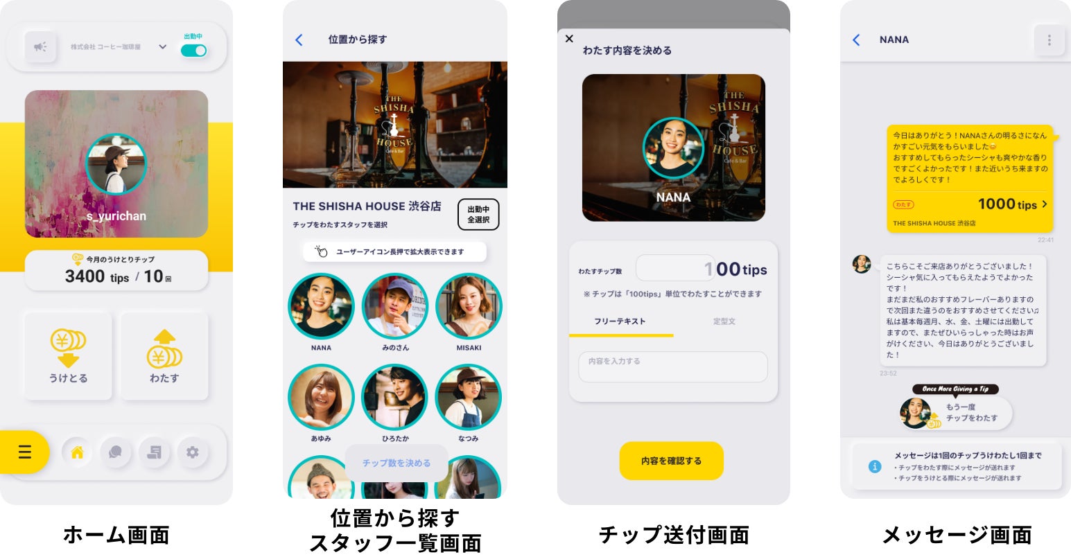 ※1)該当店舗運営企業様より匿名にて該当スタッフの[該当期間の総うけとりチップ額]/[該当期間の総労働時間]をした値。