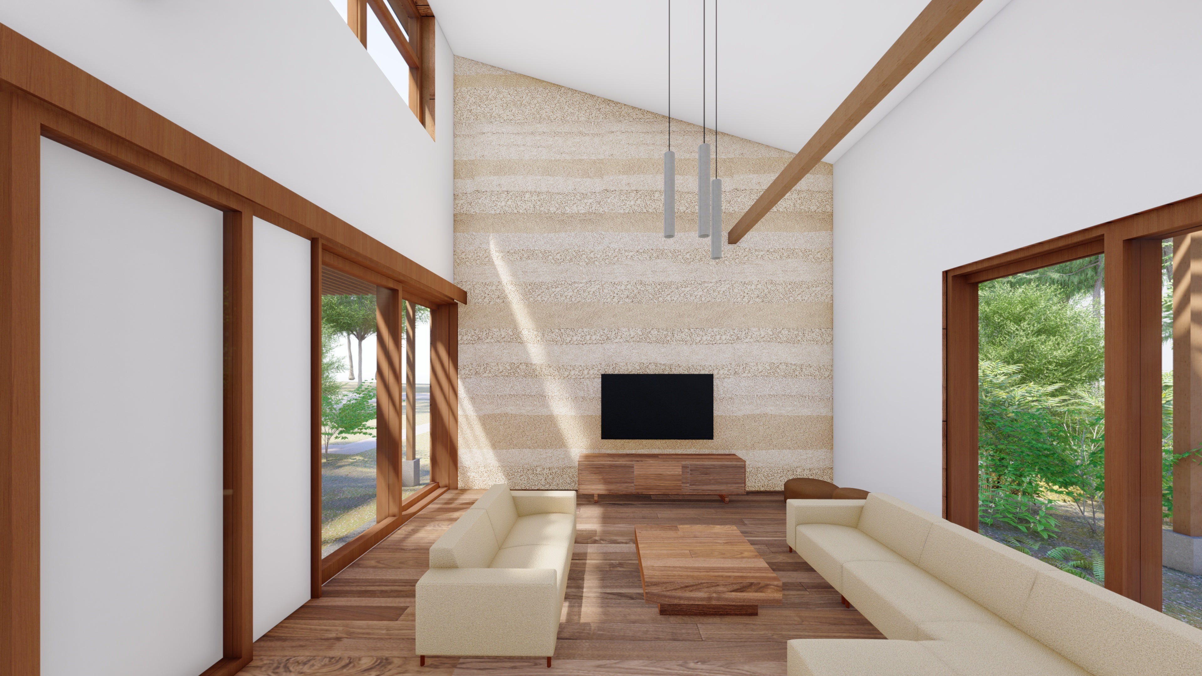 この施設では、建物の開口部周りには木製ルーバーがあり、夏は日射をカットして、空調負荷を下げ、冬は雪を窓ぎわに落とさない雁木として機能します。外壁と屋根には十分な断熱を入れ、トリプルガラスの木製サッシを取り付けることで、外皮からのエネルギー損失を大幅に減らしています。また切妻の屋根には太陽電池を設置し、また地中熱を利用した空調など、ゼロエネルギーを目指した取り組みを進めており、ZEB(Net Zero Energy Building)認証、ドイツ発祥の省エネ認証「パッシブハウス」の取得を目指しています。なお、地中熱利用に関しては、新潟県の補助金制度(「令和5年度 新潟県再生可能エネルギー設備導入促進事業補助金」)も活用する予定としています。