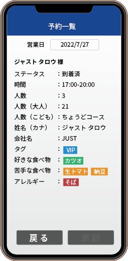 「TableCheck」連携された、予約・顧客情報をオーダーエントリーシステムから確認することができます。