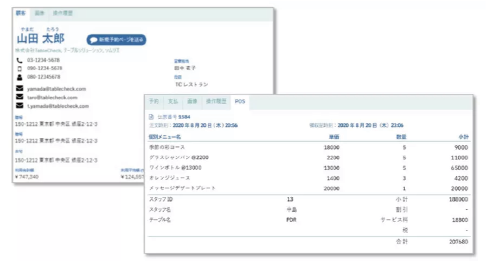 - POS伝票データを予約システムの顧客情報に紐づけし、TableCheck上でも参照可能に