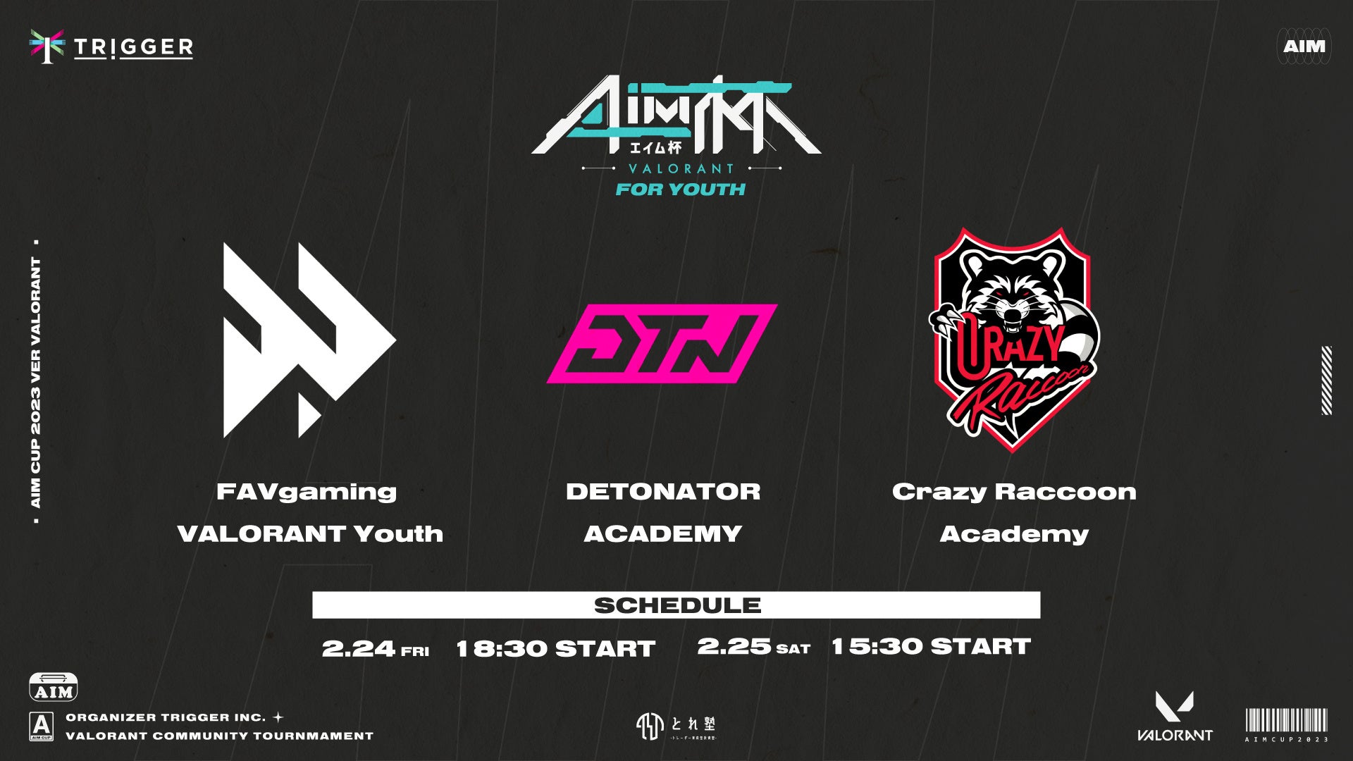 第2回「AIM杯 For Youth」の開催が早くも決定!Crazy Raccoon Academy, FAV gaming VALORANT Youth, DETONATOR ACADEMYが参戦
