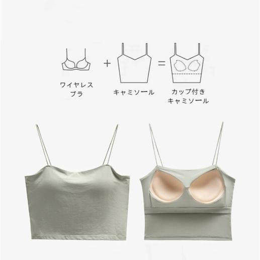 カップ付きキャミソールは精制綿を含んで、抜群の通気性と吸水性が持っていて、素肌に優しいです。ノンワイヤーのデザインでバストにワイヤーの締め付けから解放させます。タンクトップと一体化で洗いやすくて手入れが簡単だけではなく、家でも外でも普段のインナーとして1枚で完結するから、朝の支度もラクラクと、お仕事や学校にも、楽しみ方は自分に次第です。