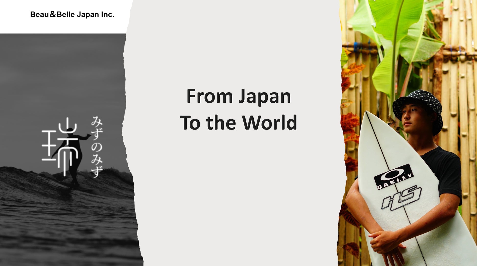 日本の希少な天然水を集めたブランド”瑞 みずのみず”を開発/販売するボーアンドベル・ジャパン株式会社(代表:小寺 毅)は、JPSA公認プロサーファーであり世界で活動するフリーサーファーでもある松本浬空プロ(17)と共に、世界へ挑戦する活動を開始した。
