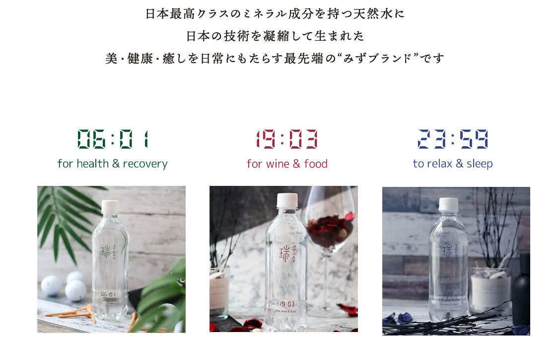 日本最高クラスのミネラル成分を持つ希少な天然水に日本の技術を凝縮して生まれた「美・健康・癒し」を日常にもたらす最先端の”みずブランド”