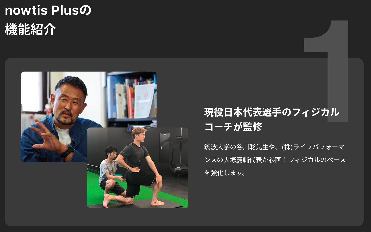 nowtisで自分のフィジカルレベルを把握し、nowtis Plusで更なる強化に繋げます。