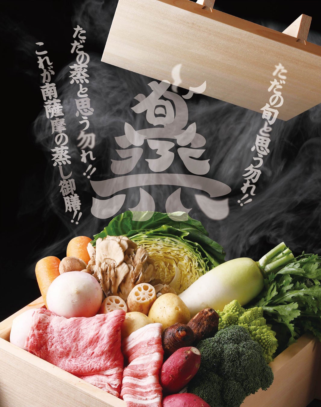鹿児島の力強さを表現した筆タッチと、旬を蒸し上げる動きのあるデザインは、他にはない唯一無二の独自性を持っており、まさに「名は体を表す」を体現している。
