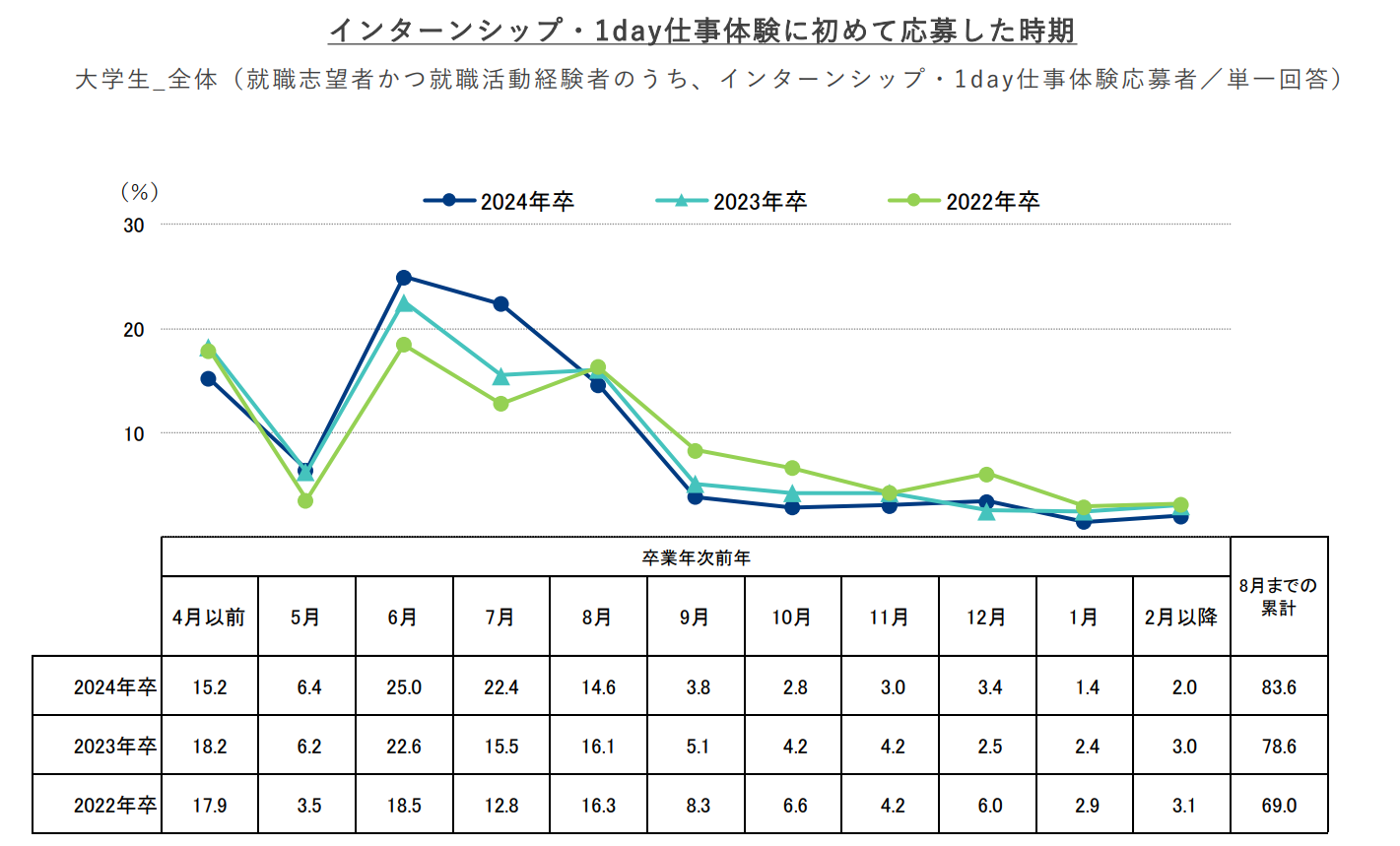 24卒の学生に関しては9割以上がインターンシップ・1DAY仕事体験に応募しておりそのうち、