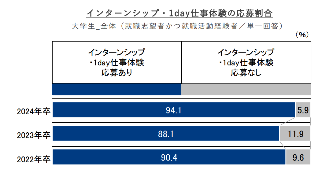 □24卒のインターンシップ・1DAY仕事体験の応募割合 94.1%