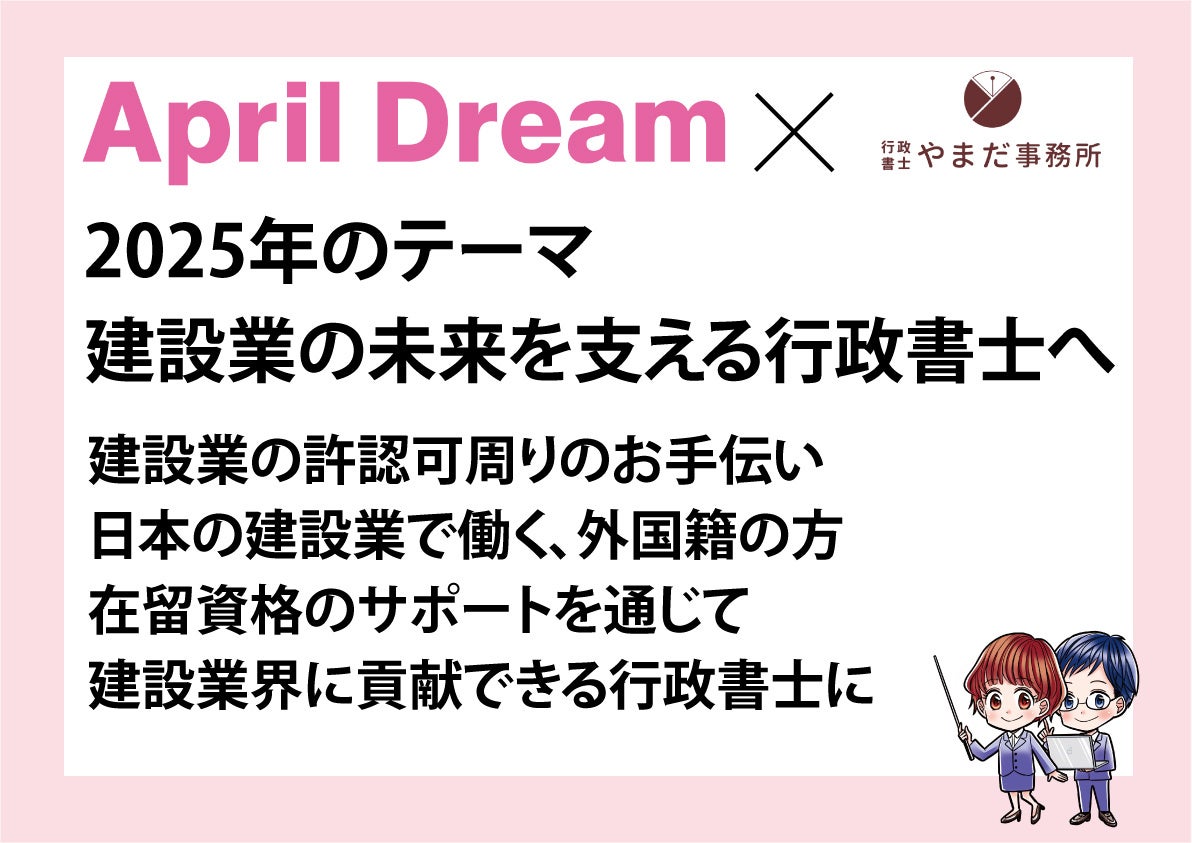 当社は、4月1日に夢を発信する日にしようとするApril Dreamに賛同しています。このプレスリリースは「行政書士やまだ事務所」の夢です。